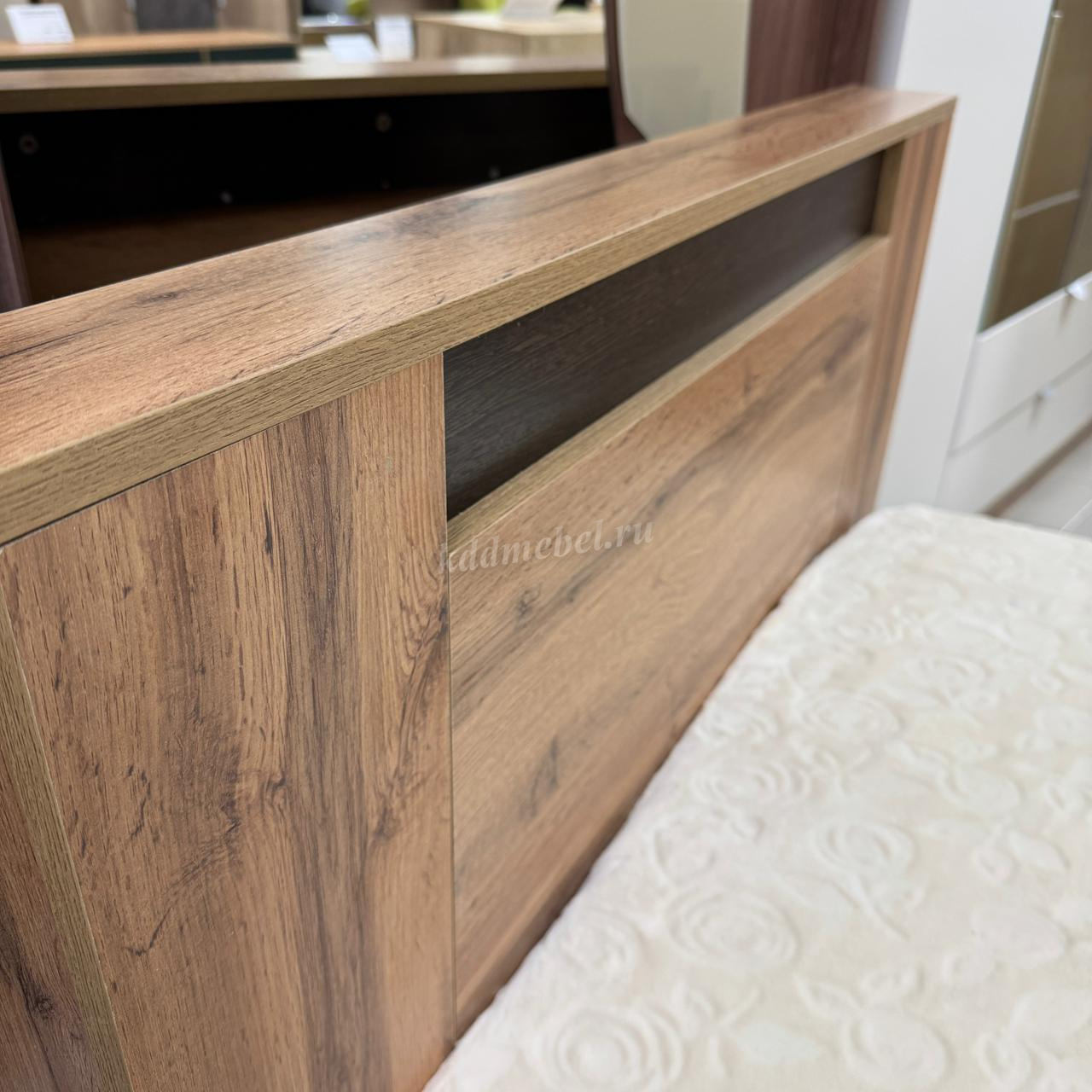 Кровать имеет две вместительные ниши для вещей