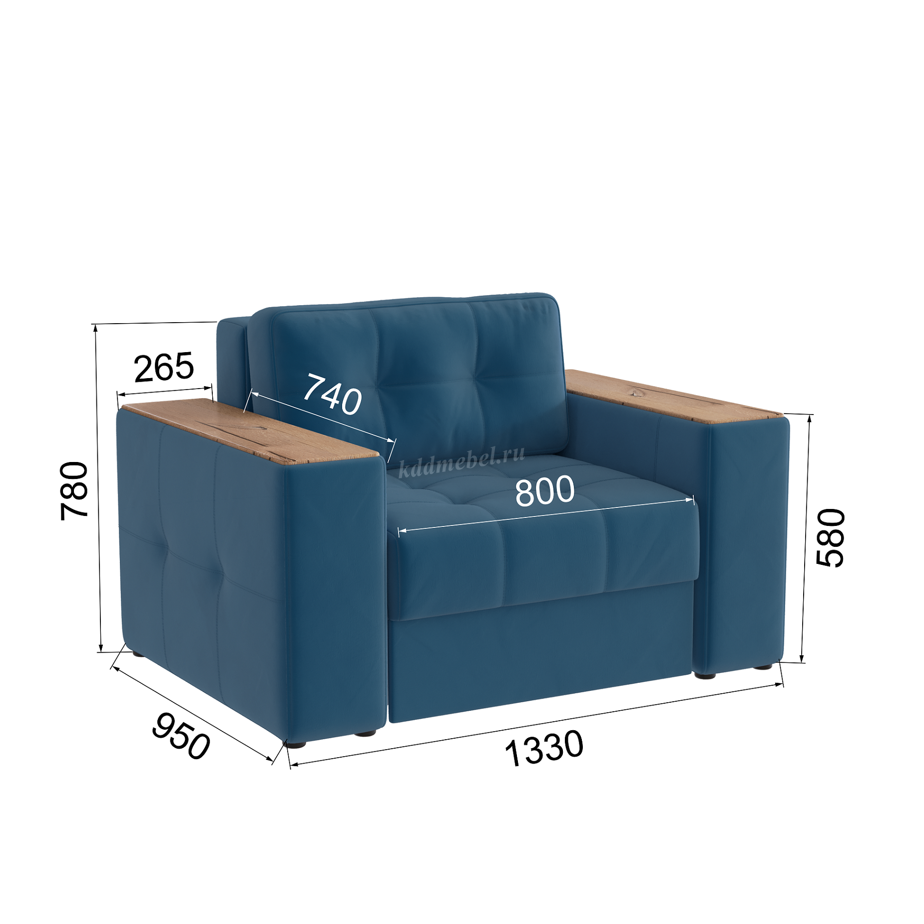 Подлокотники шириной 265 мм, обтянутые тканью и простеганные двойной отделочной декоративной строчкой.