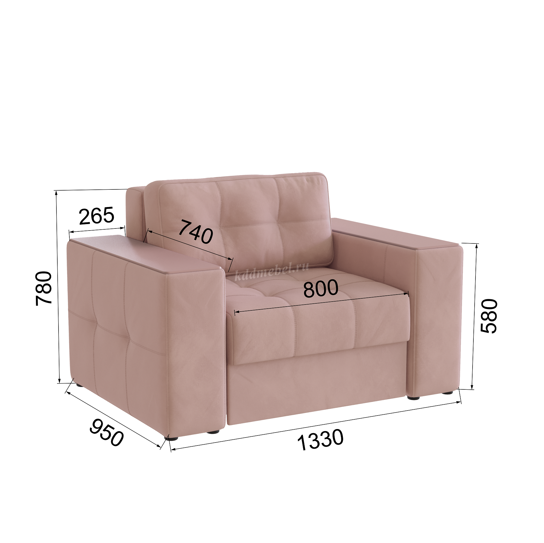 Подлокотники шириной 265 мм, обтянутые тканью и простеганные двойной отделочной декоративной строчкой.