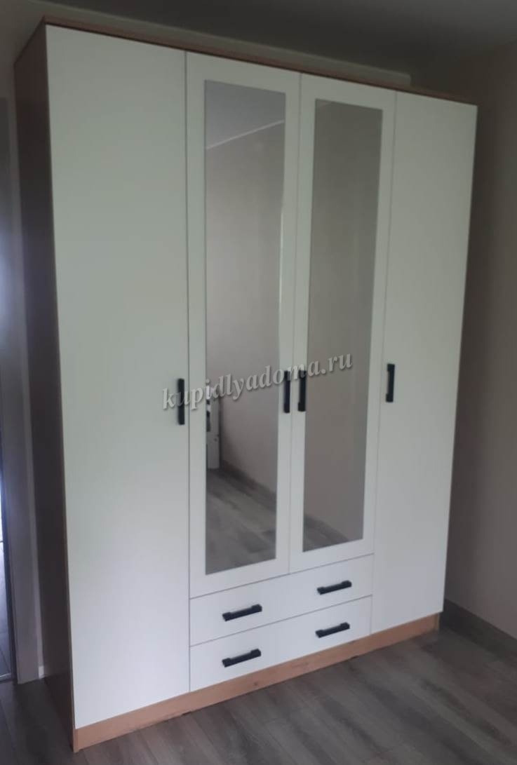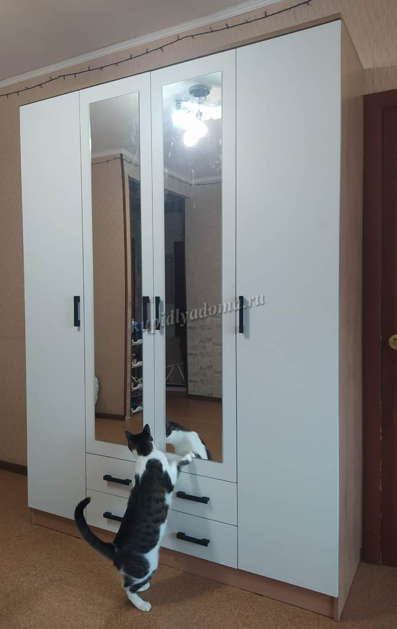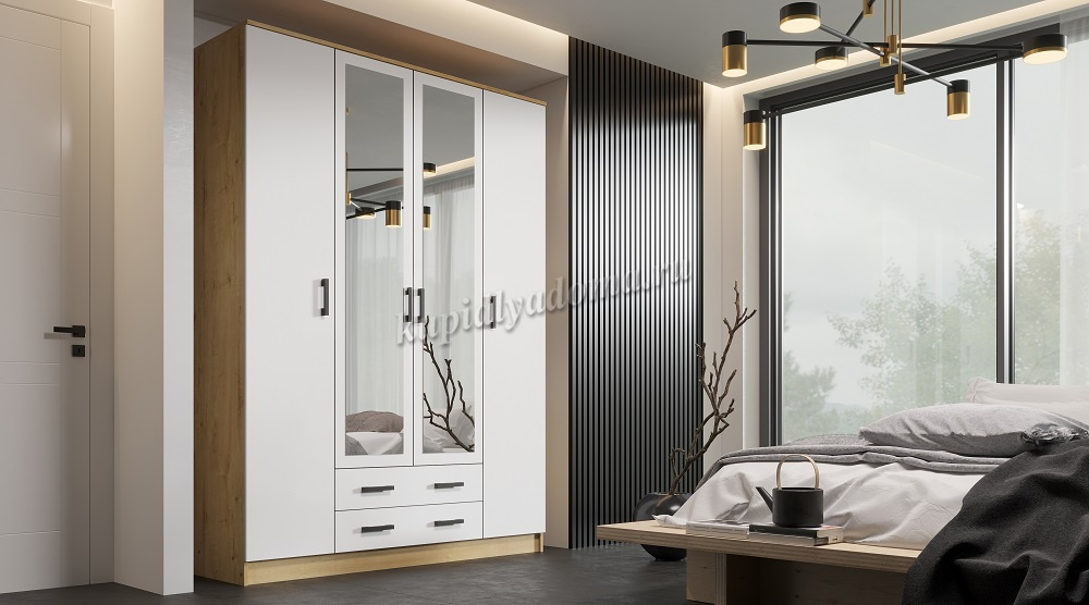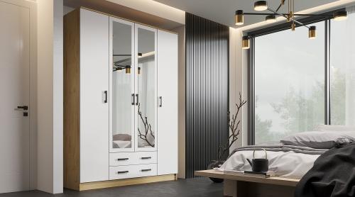 Помимо своей большой функциональности, четырехдверный шкаф Квадро отлично впишется в любое помещение Вашей квартиры либо дома, ведь у него в наличии 2 больших зеркала закрепленных на центральных дверях.