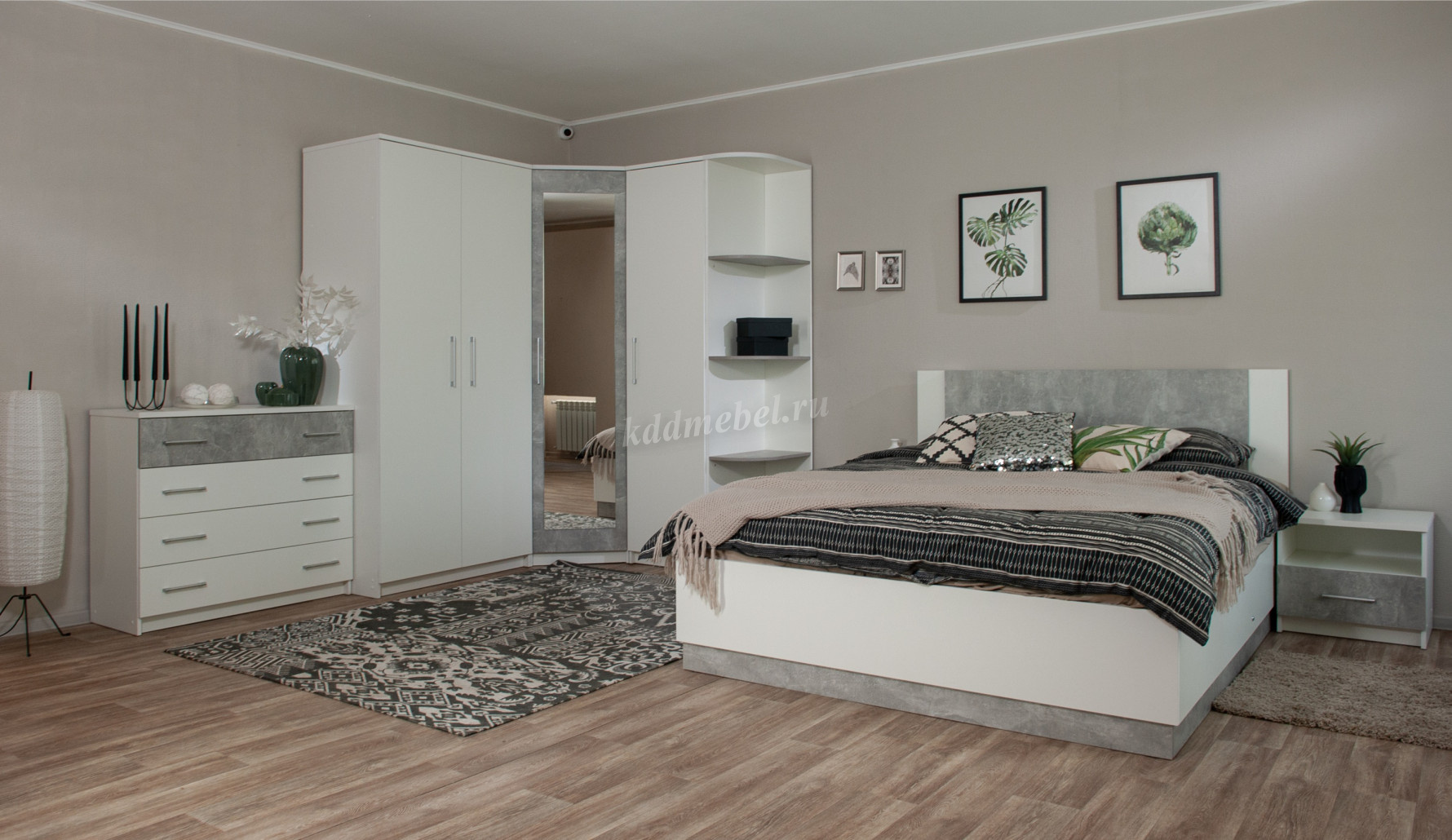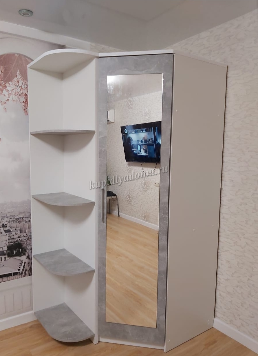 Описание Стеллаж угловой Аврора (Белый/Ателье светлый)