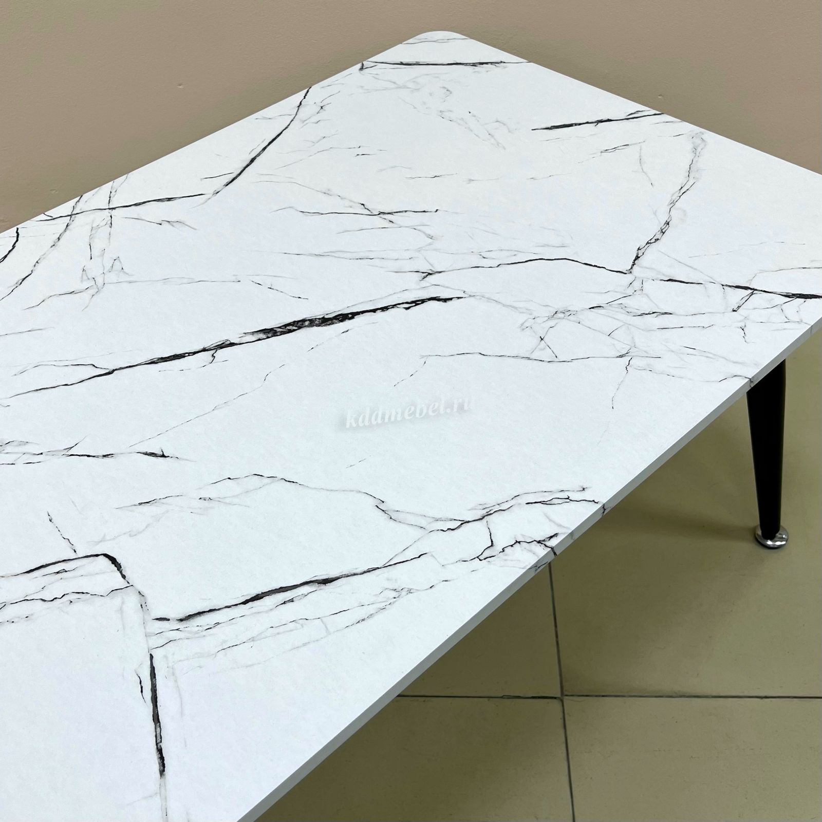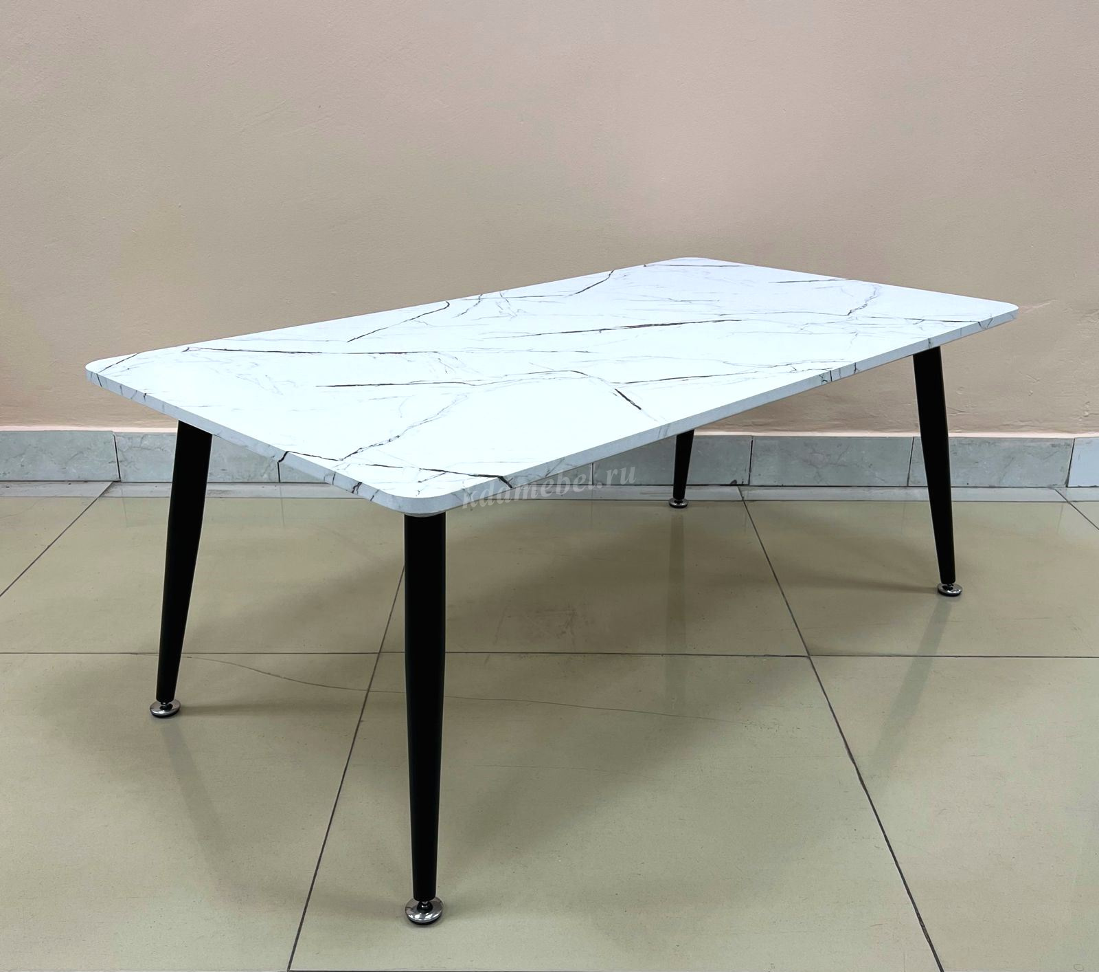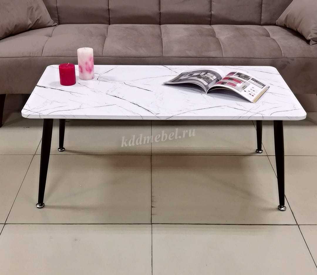 • Стол журнальный Элегант (Черно-белый мрамор/Опоры белые)