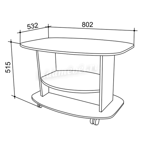 2Стол журнальный "Лидер" имеет прямоугольную закругленную форму крышки стола.